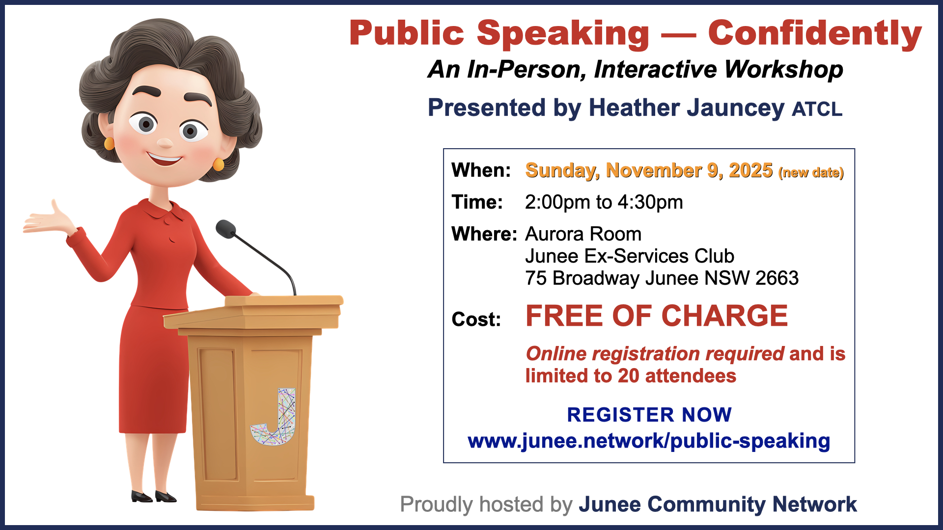 NEW DATE: Due to circumstances beyond our control, we postponed the Public Speaking — Confidently Workshop to Sunday, November 9, 2025